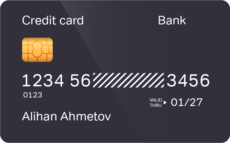 Чтобы верифицировать карту, прикрой все цифры номера, кроме 6 первых и 4 последних, затем сделай фото лицевой части. Должно быть хорошо видно имя держателя карты. Полученное фото загрузи в личном кабинете.